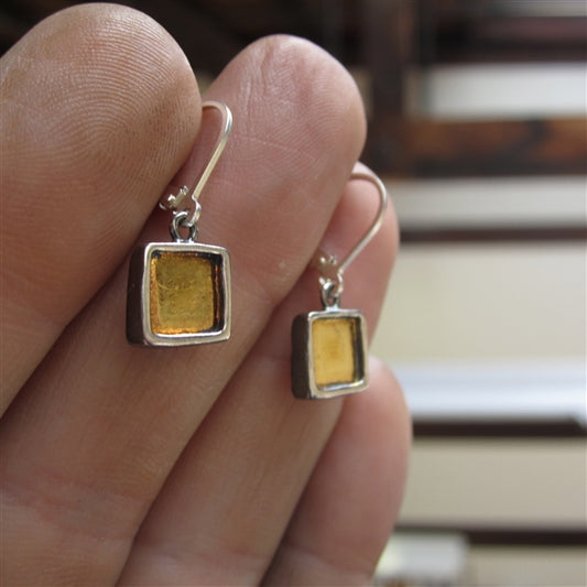 Tiny Square 24K Gold and Sterling Silver Earrings - Keum-Boo Earrings on Gold Fill Lever Backs