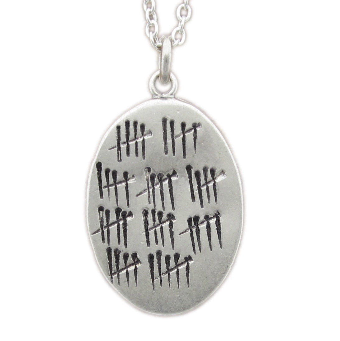 Mark a milestone birthday or an anniversary with this sweet silver necklace. The front side is stamped by hand with 50 tally marks and the back says "Who's counting?"
