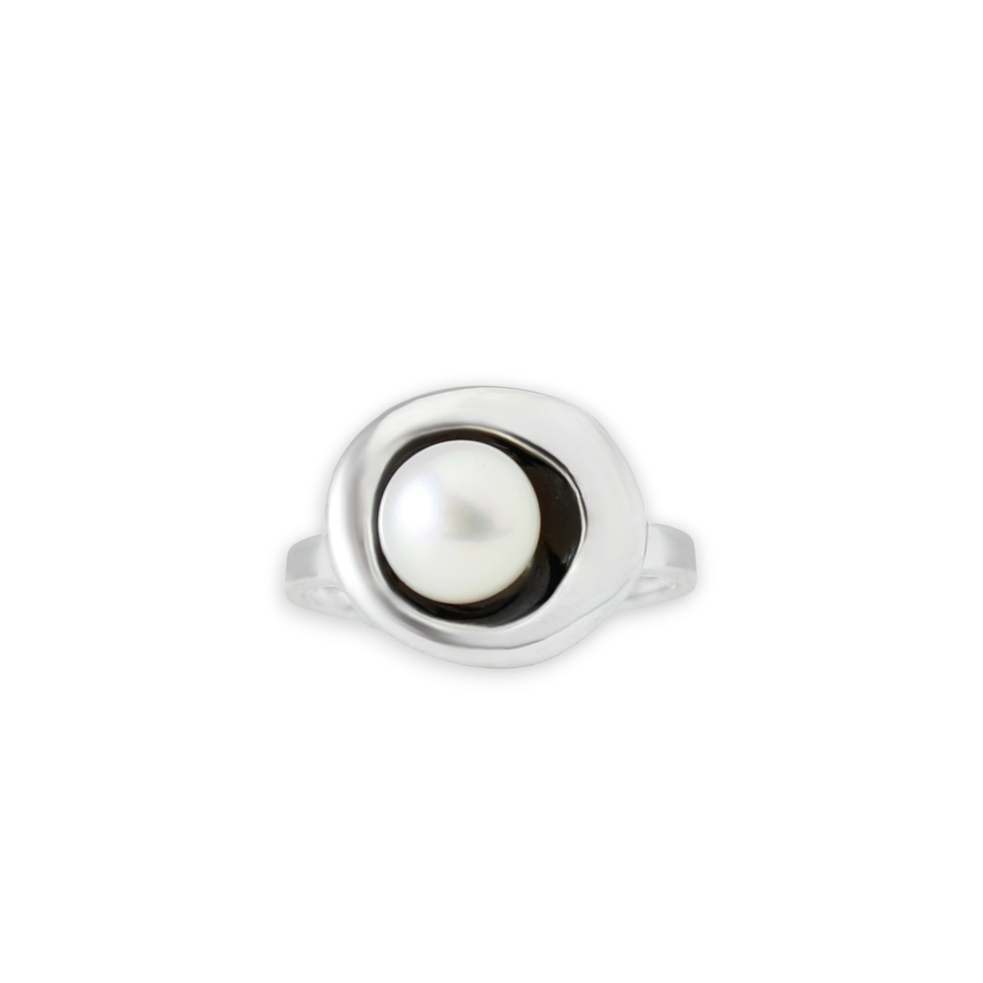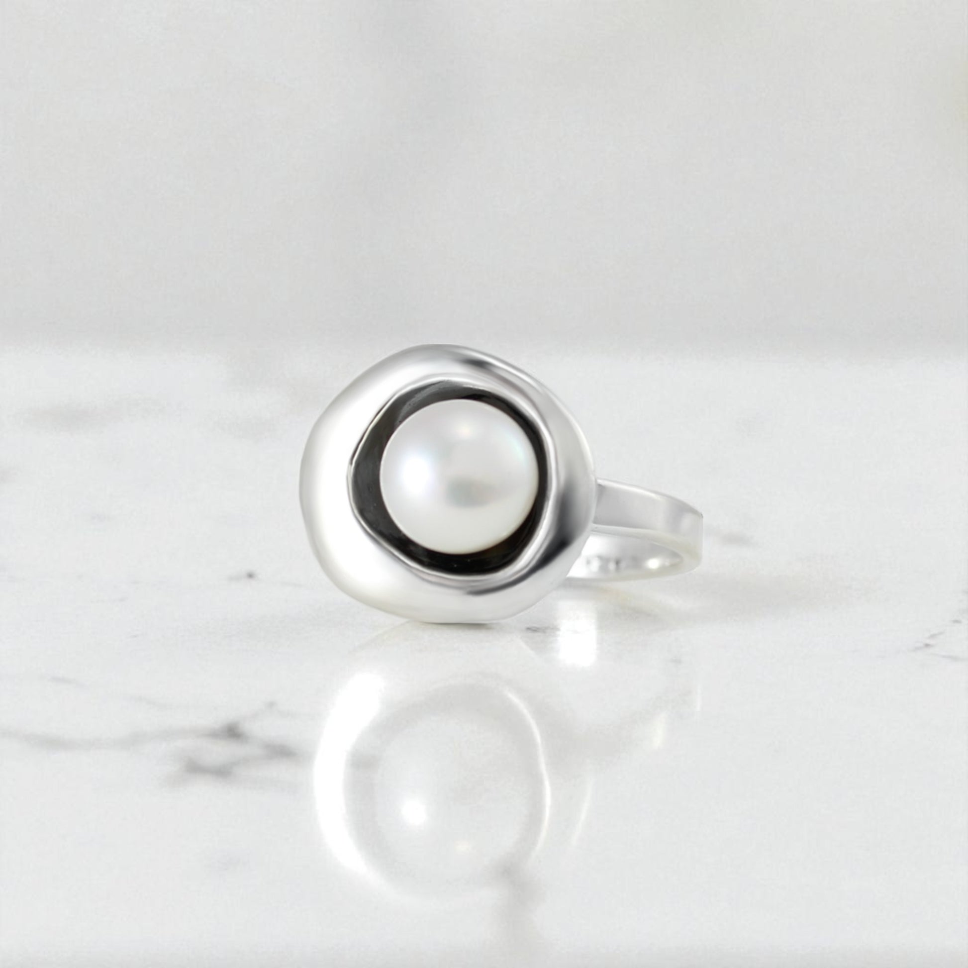 Round Sterling Silver and Pearl Ring - Minimalist Pearl Ring