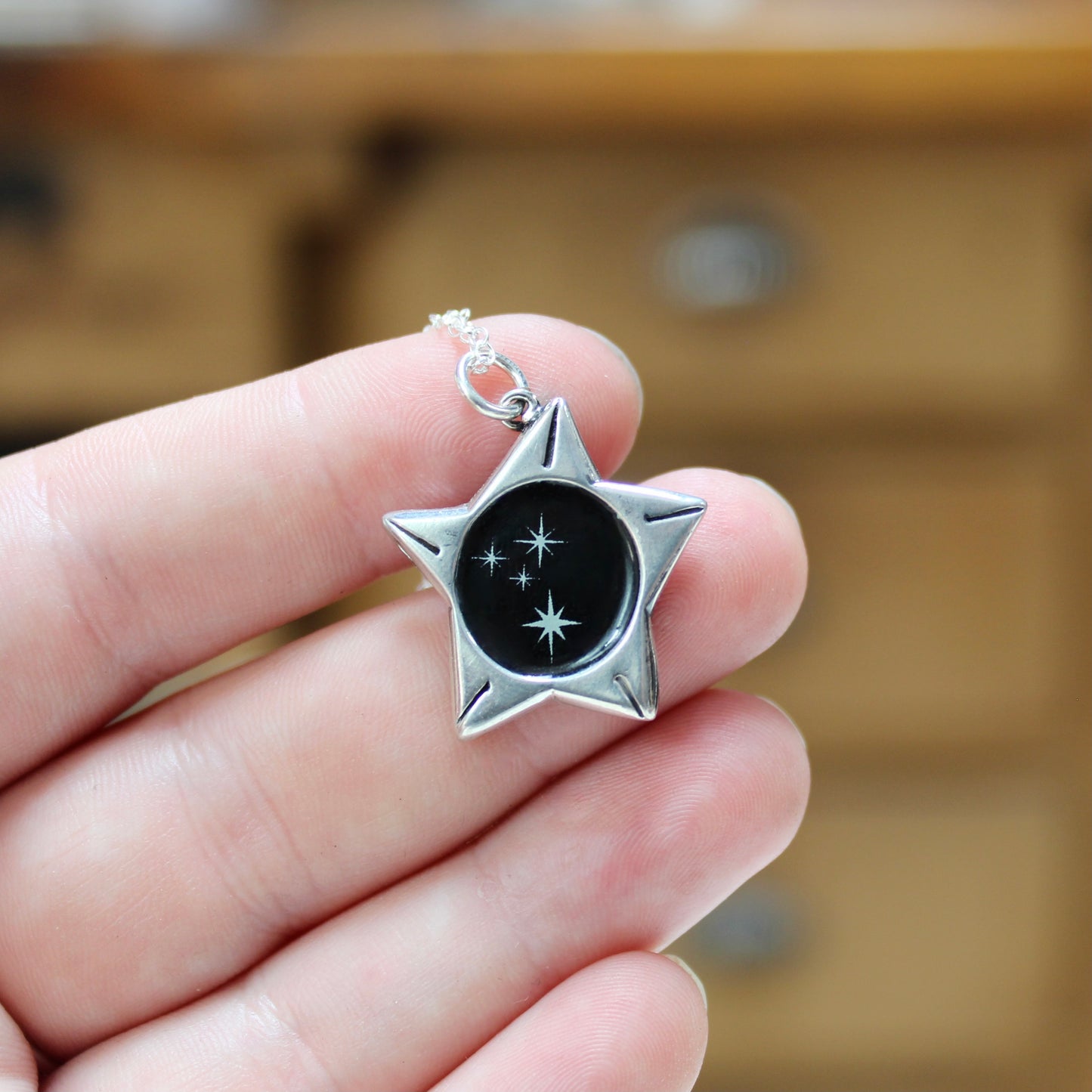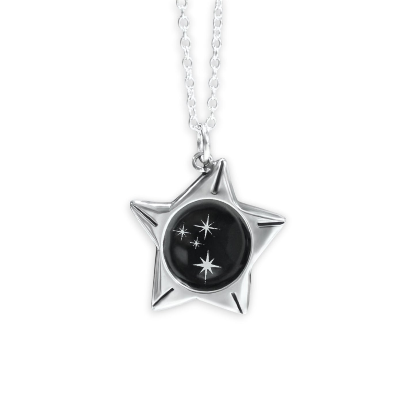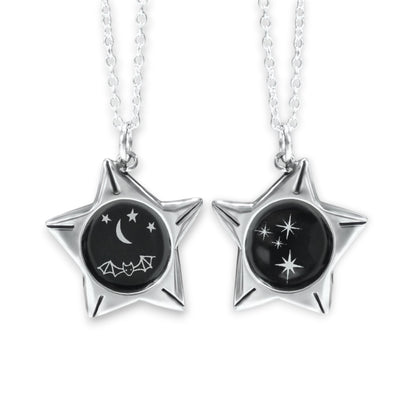 Star Shaped Night Sky Necklace - Reversible Sterling Silver and Enamel Pendant on Adjustable Sterling Chain - Dreamy Gifts for Stargazers