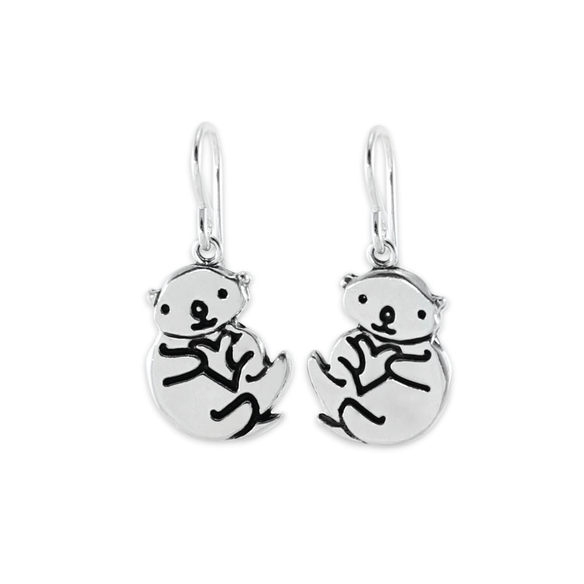 Super cute sterling silver otter earrings. She's holding a heart for you!