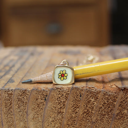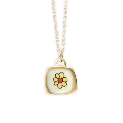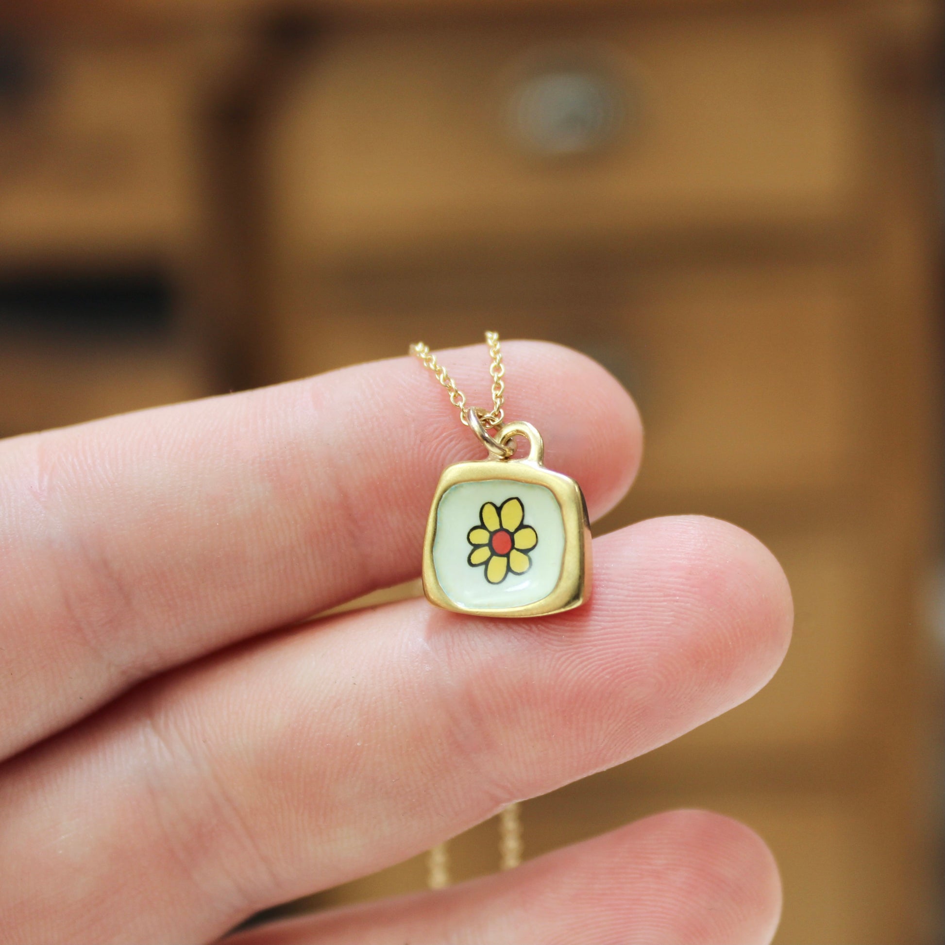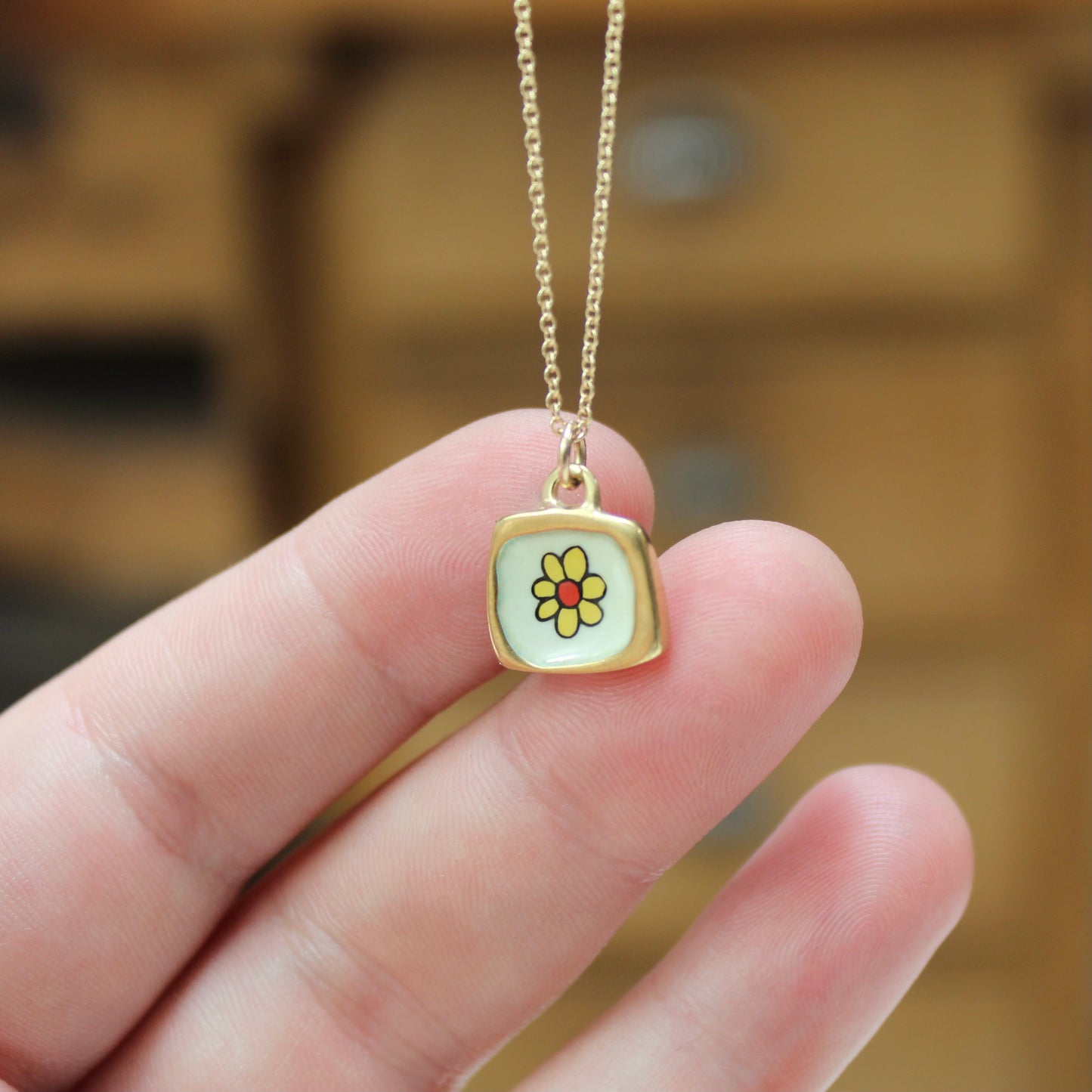 Tiny Gold Flower Necklace - Gold And Enamel Daisy Pendant - 60's Charm Jewelry