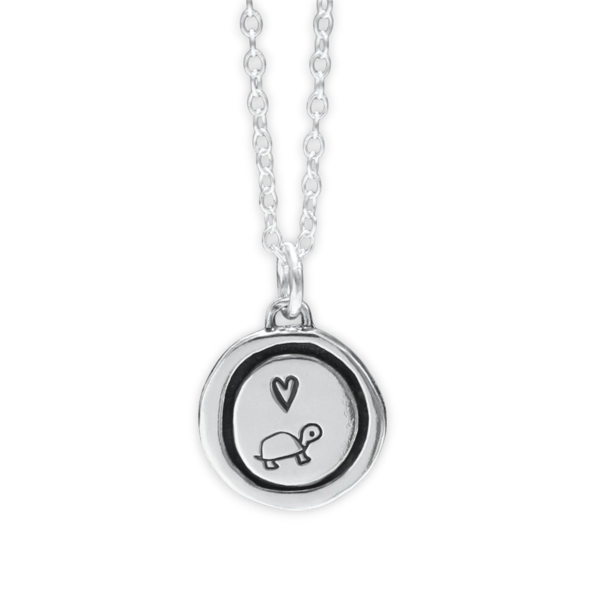 This tiny turtle charm either comes on an adjustable chain which clasps anywhere from 16-20 inches, or as just the charm alone. It measures half an inch across, making it easy and comfortable to wear every day.