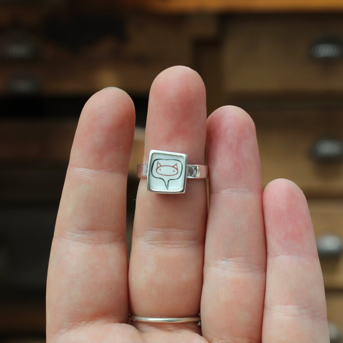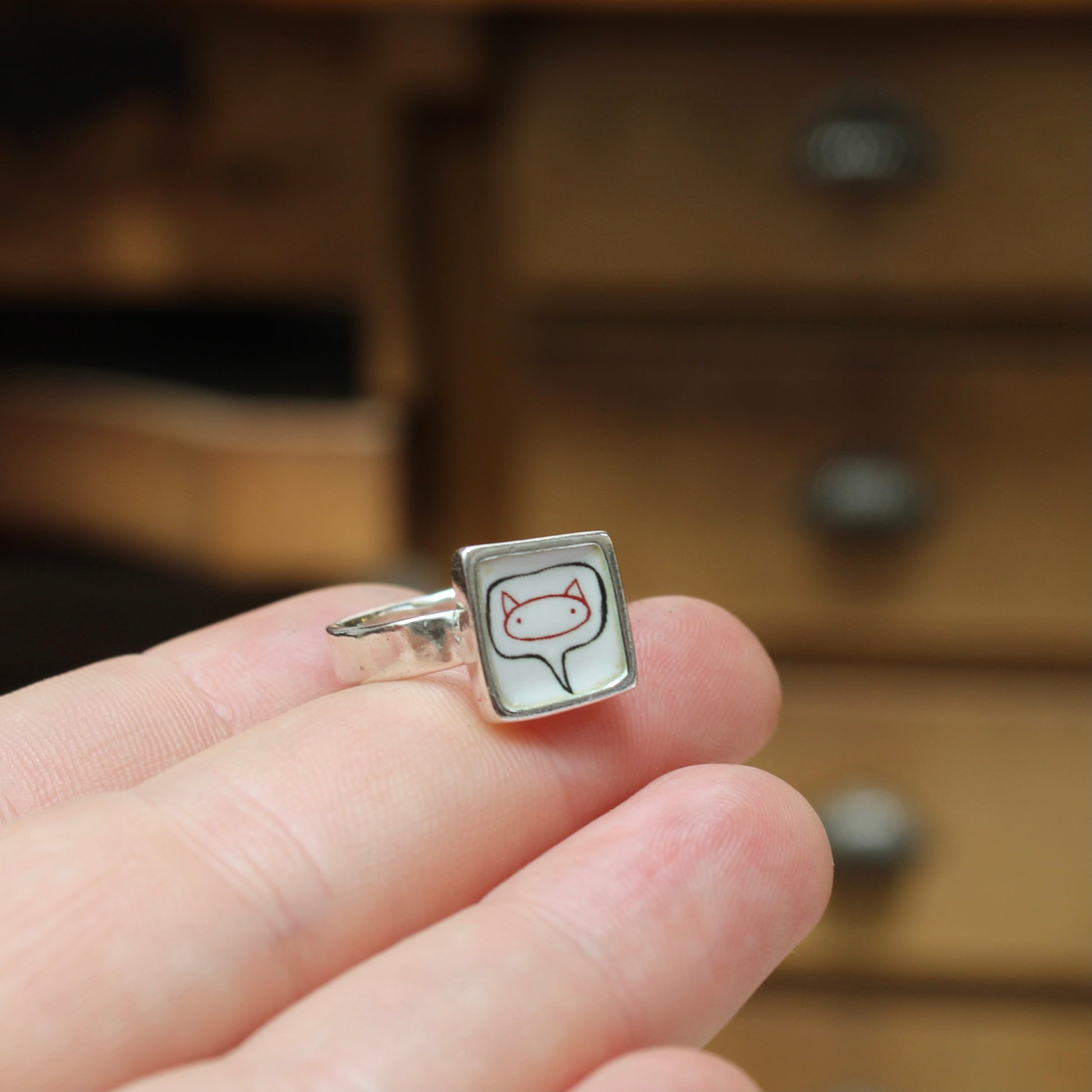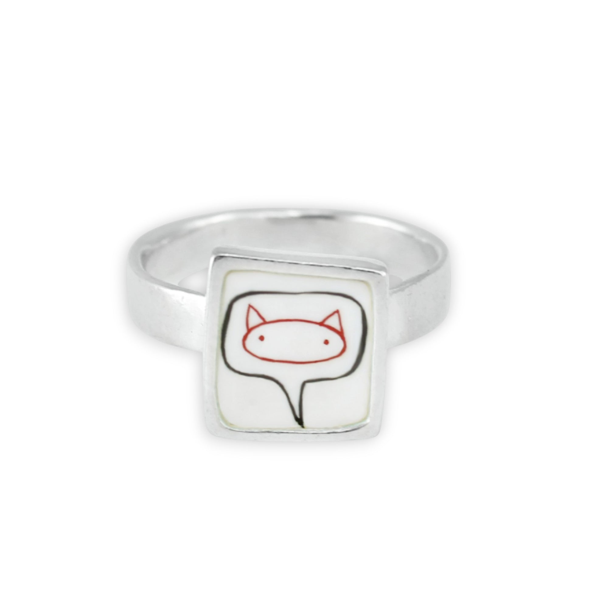 Voice Bubble Cat Ring - Sterling Silver and Enamel Jewelry - Let's Talk Cats