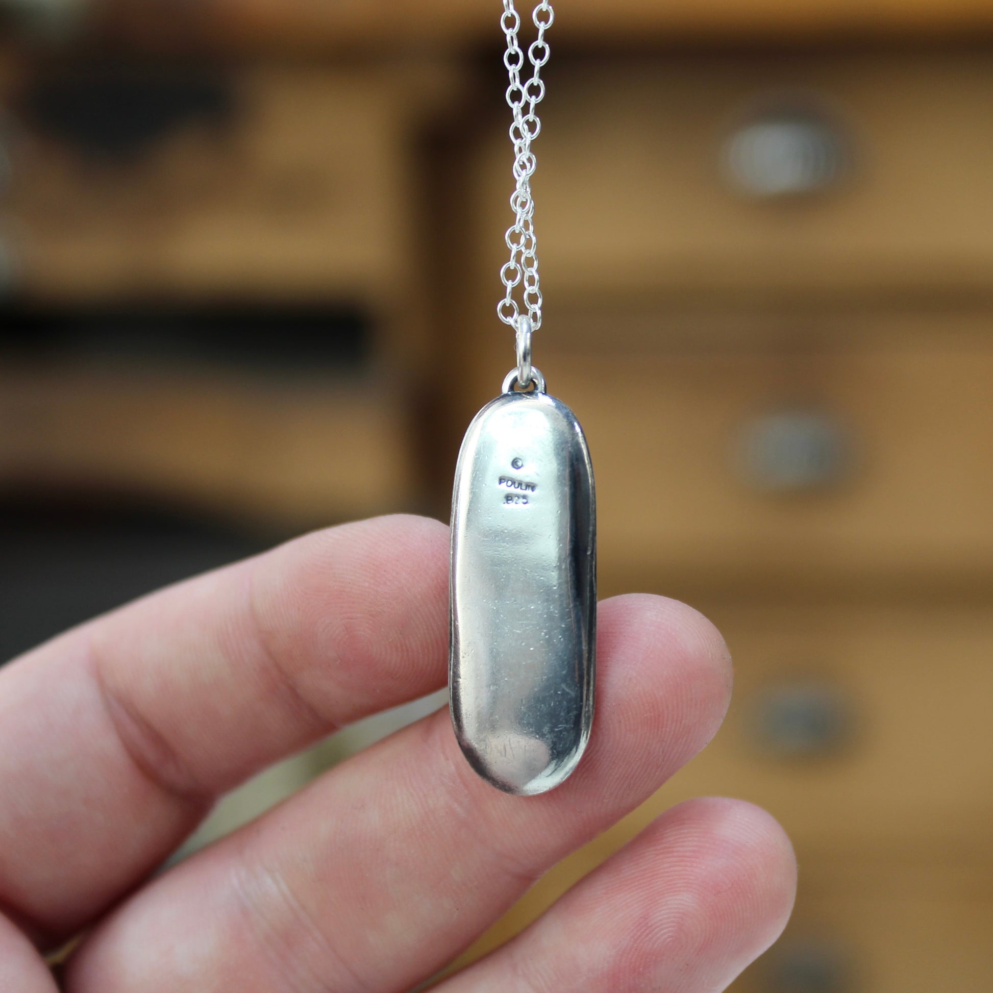 24 Karat Gold and Sterling Silver Pendant Necklace with Bezel Set Green Prehnite