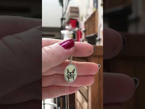 This adorable pendant features a hand drawn image of a Burmese or Siamese cat. These cats are very playful, outgoing and notoriously vocal.