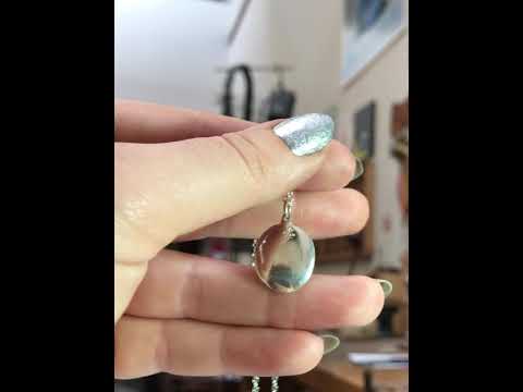 This sterling silver and enamel necklace measures about 3/4 of an inch tall and hangs from a 16 - 20 inch adjustable sterling silver chain with a spring ring clasp.