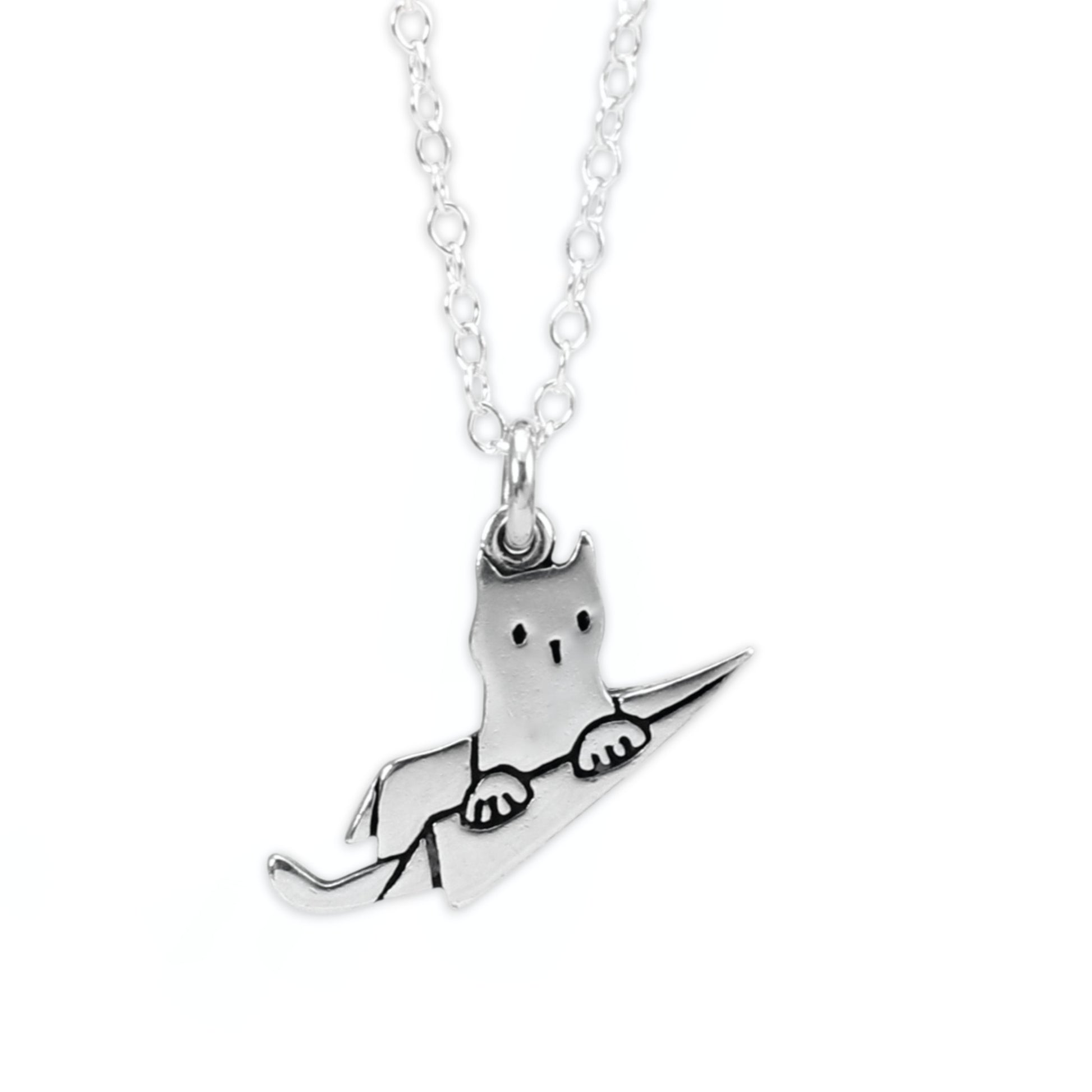 Sterling Silver Flying Cat Charm on Adjustable Chain- Cat in a Plane Charm