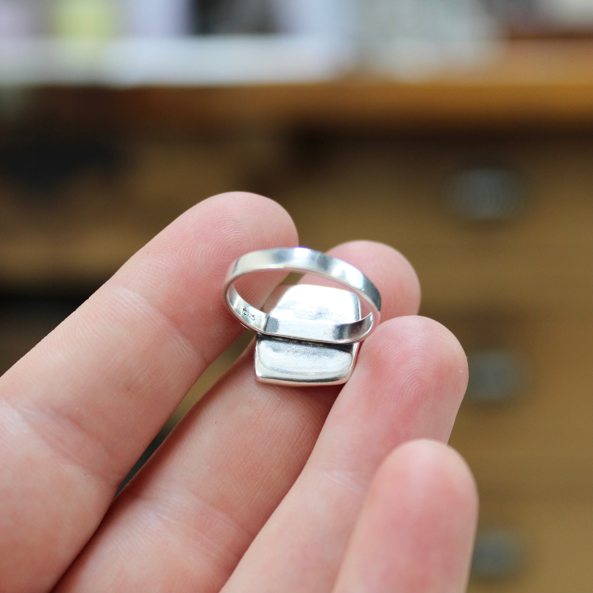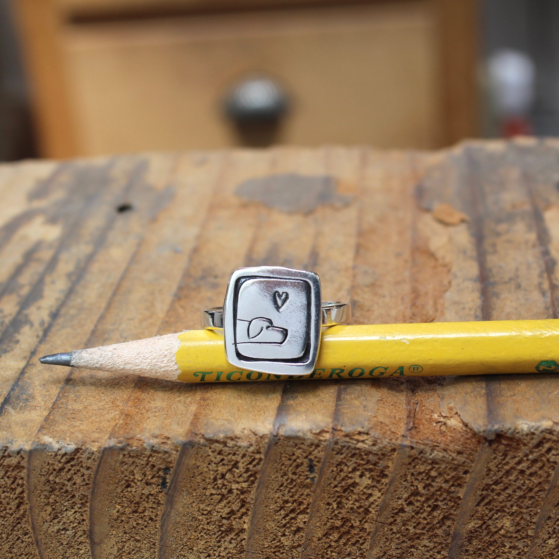 This adorable sterling charm ring has a pointer dog etched in a smartly framed silver setting. The face of the ring measures 1/2 inch by 1/2 inch.