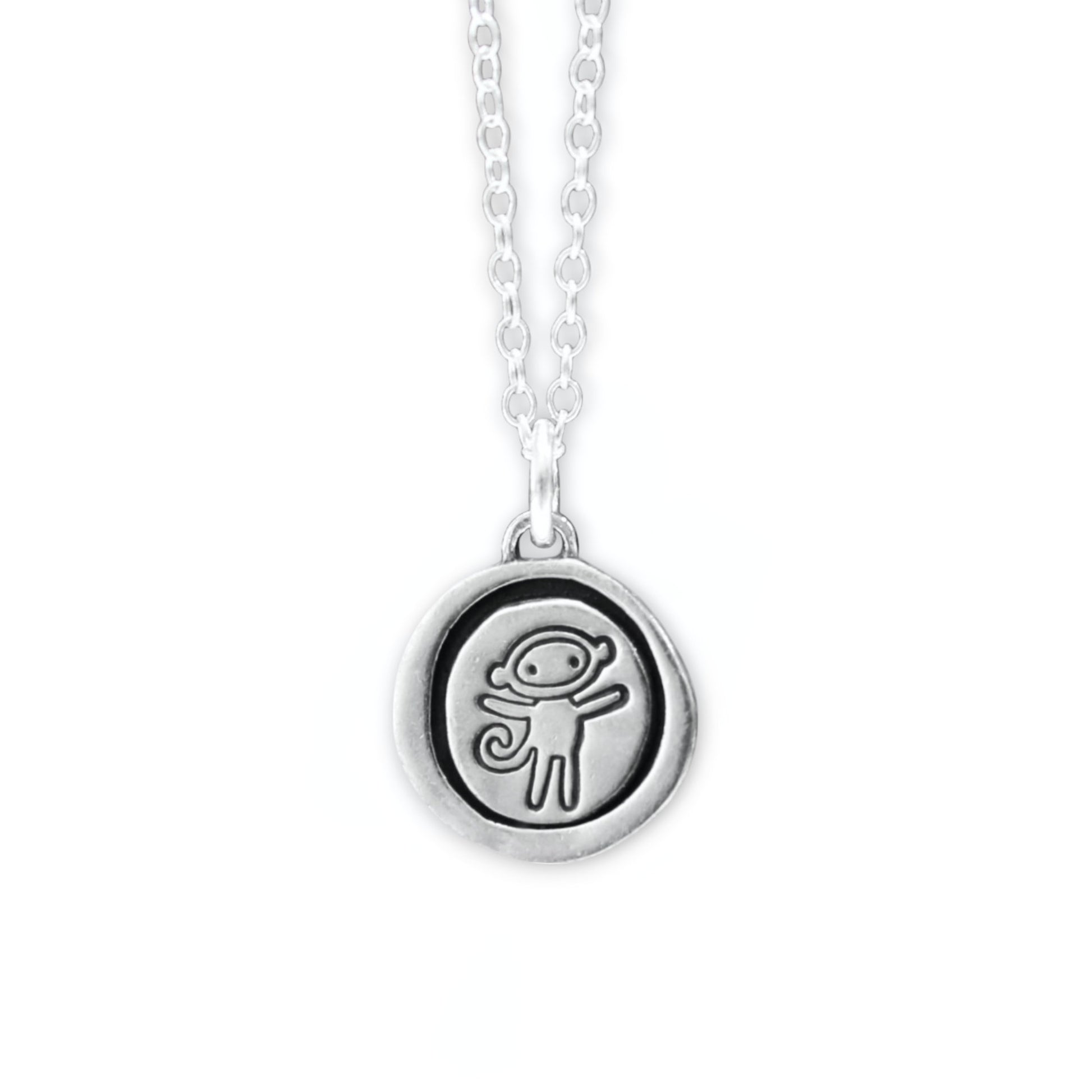 Sock Monkey Charm Necklace - Sterling Silver Charm on Adjustable Chain - Cheeky Monkey!