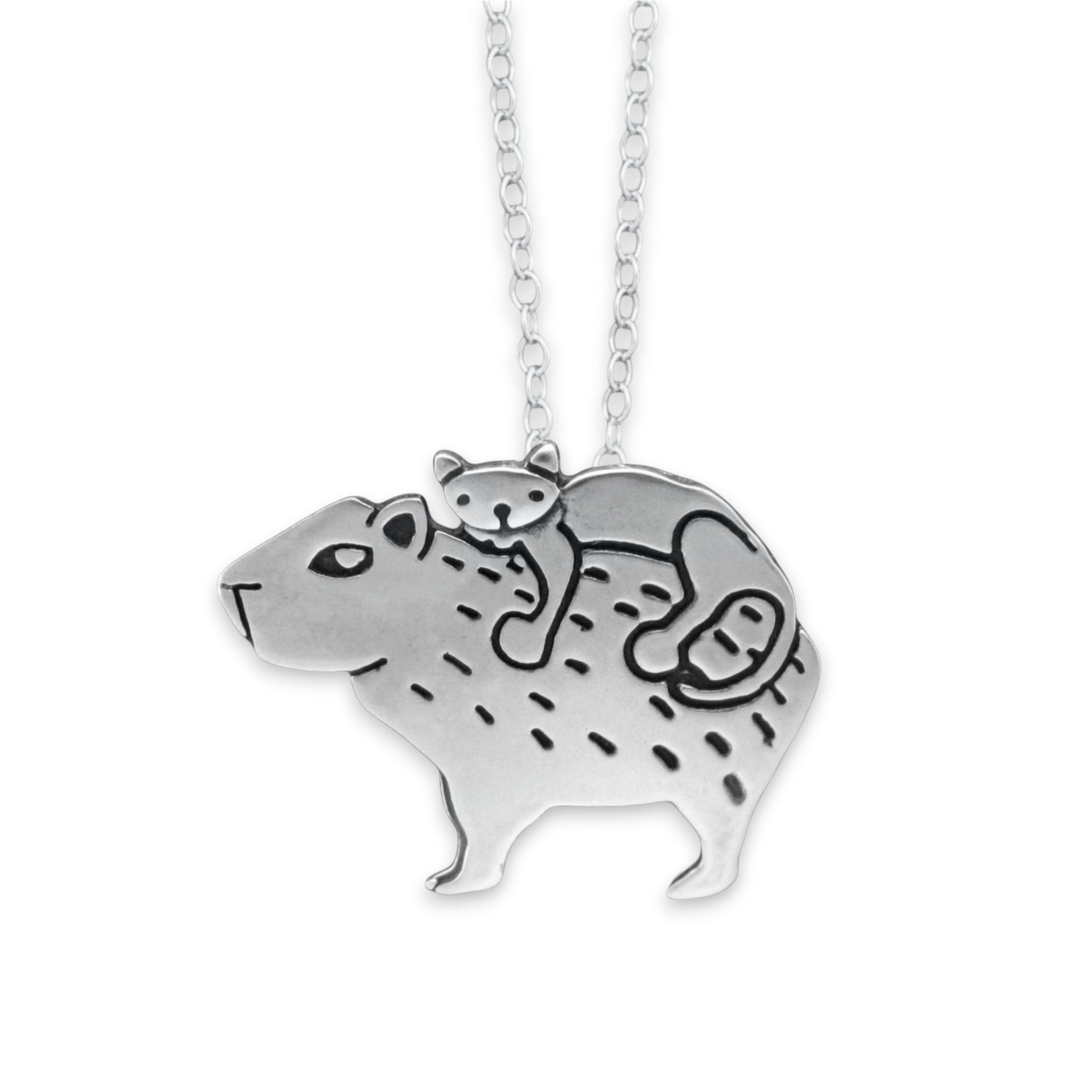 Sterling Silver Cat and Capybara Charm Necklace on Adjustable Chain