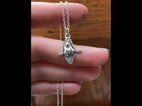 Sterling Silver Kayaking Seal Necklace - Otter in a Kayak Pendant