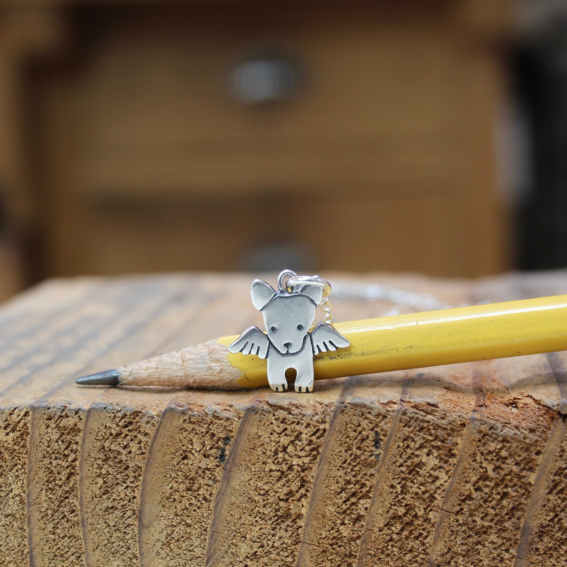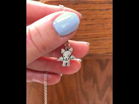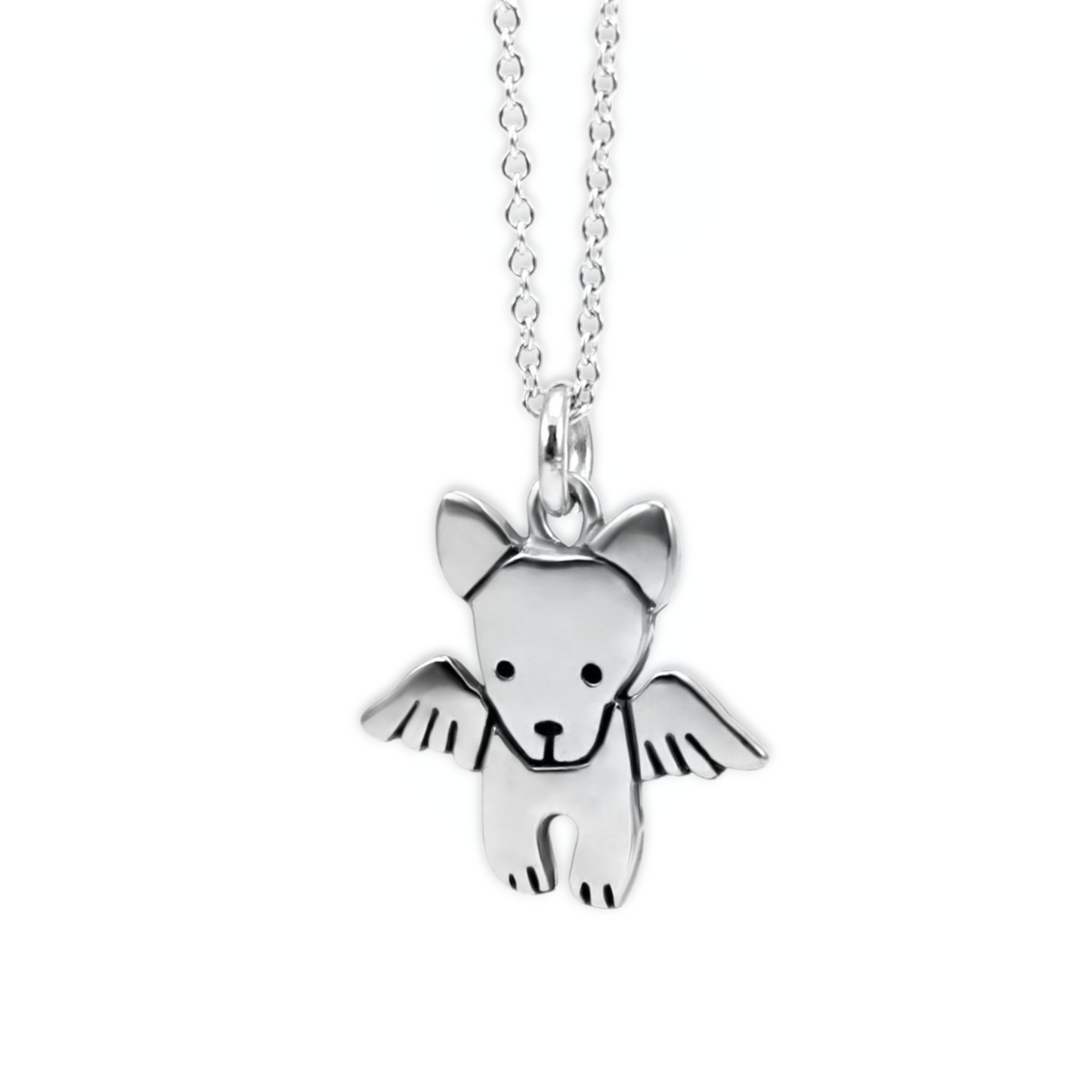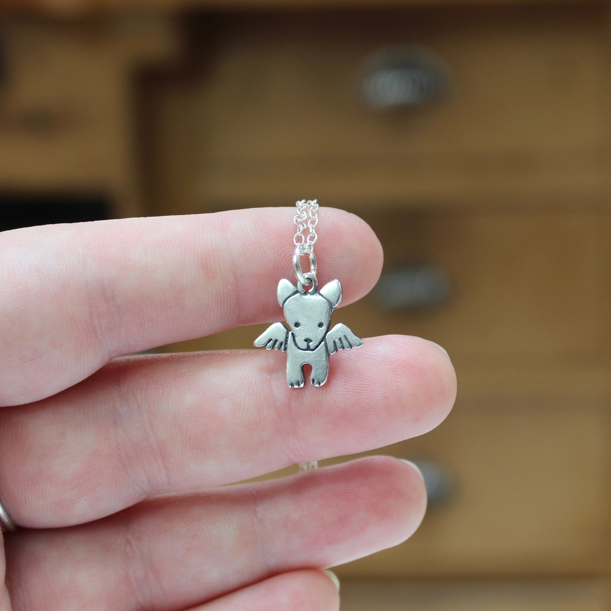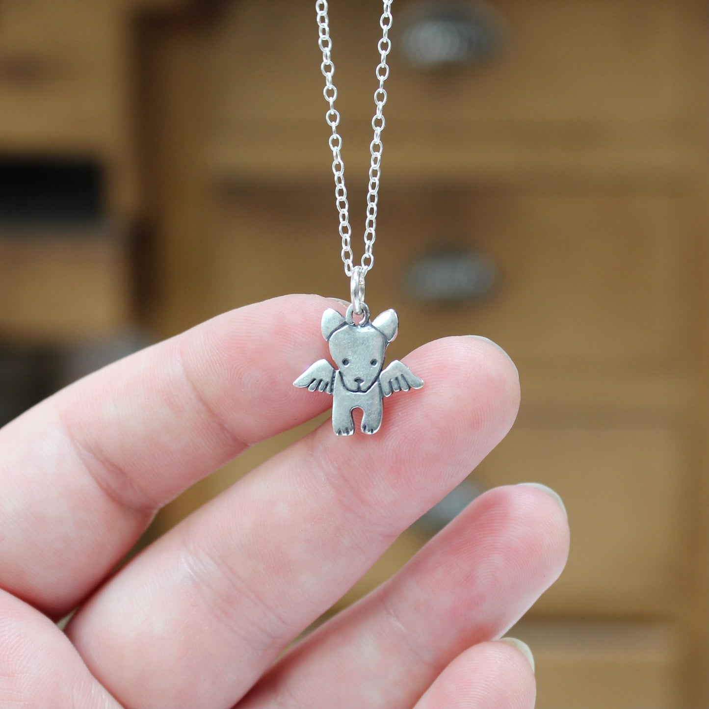 Sterling Silver Angel Dog Necklace - Dog Memorial Charm on Adjustable Chain