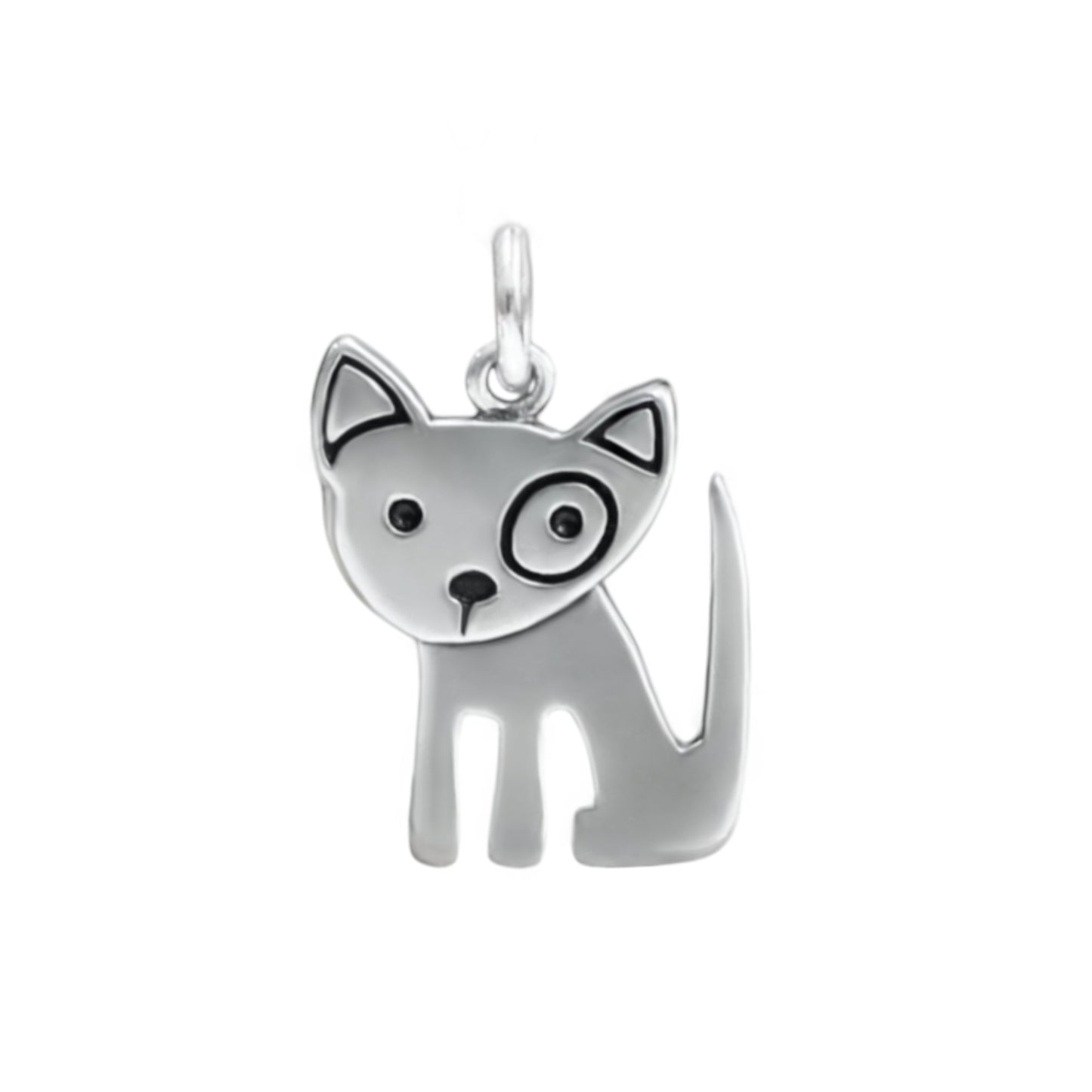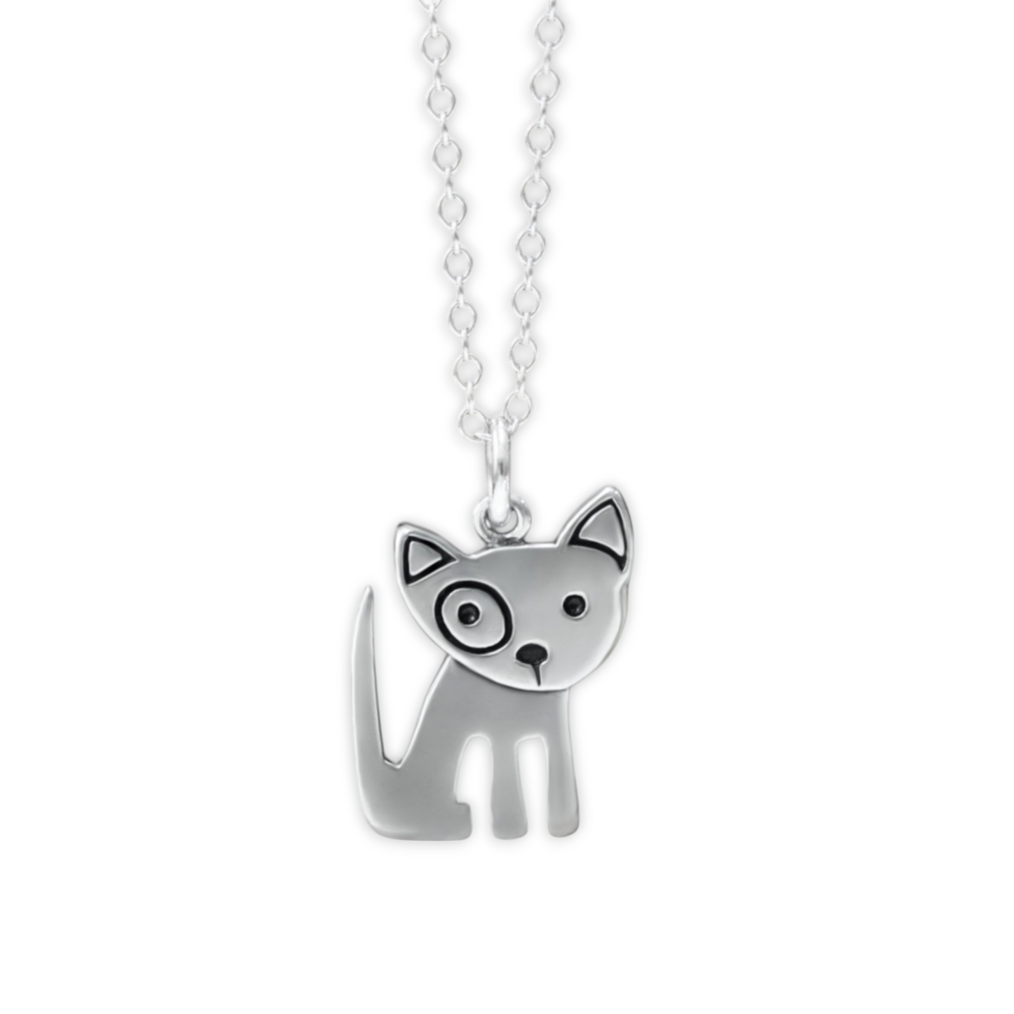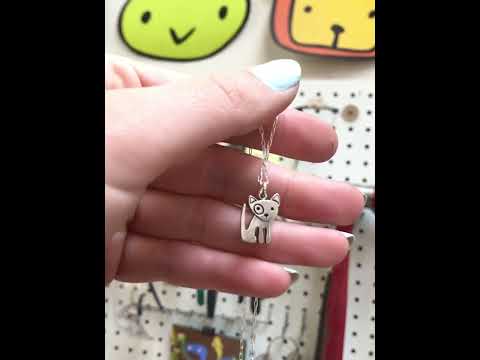 This sterling silver dog necklace measures 1/2 of an inch tall and has the design on both sides.