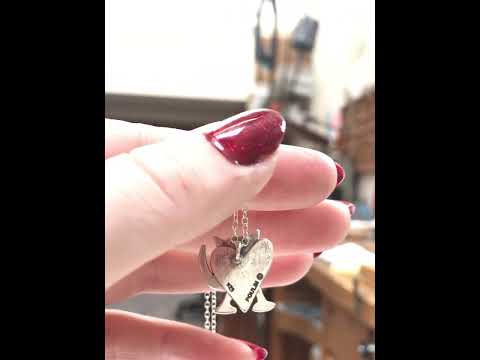 This cat is shy and peeks behind a heart. He measures 3/4 of an inch tall and is made from sterling silver.