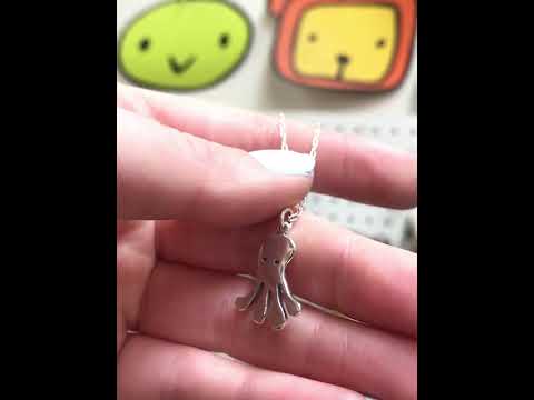 This sterling silver octopus charm necklace measures 3/4 of an inch tall and is double sided.