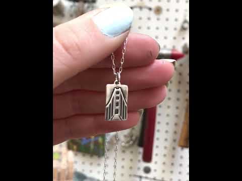 Sterling Silver Square Golden Gate Bridge Necklace