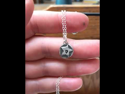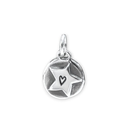 Teeny Tiny Star Charm - Sterling Silver Round Star Charm With Heart on Adjustable Sterling Chain - Cute Gift Idea!