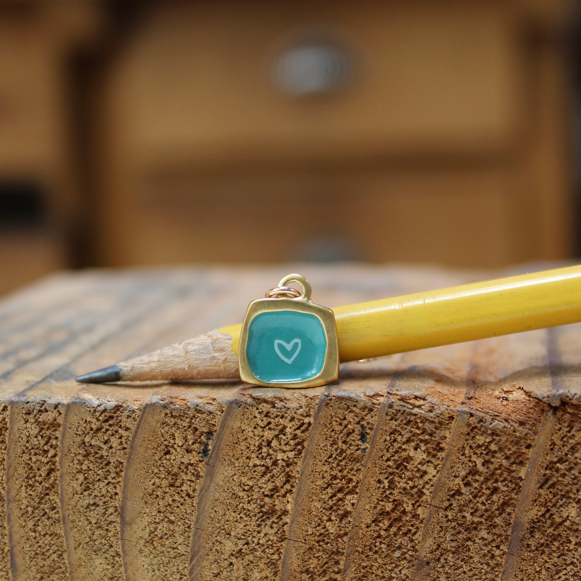 Each piece gets 3 layers of kiln-fired enamel on top of my cast sterling silver shape. I fire these at 1400 degrees for a durable, waterproof and vibrant finish.